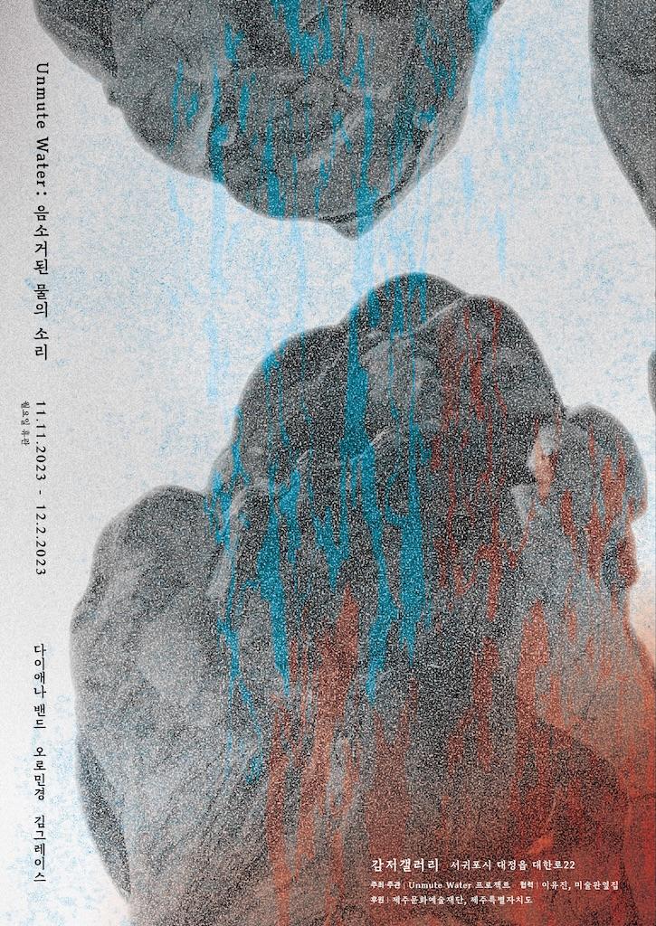 Unmute Water Project is a sensory and research-based art project that begins with field research into Jeju Island’s groundwater, focusing on sensing and interpreting sounds, silences, and traces that lie beyond human hearing. Collaborating across disciplines such as sound/media art, literature, and visual anthropology, the project explores voices vulnerable to omission at the intersection of art, technology, and activism. Through exhibitions held at Gamjeo Gallery (2023) and Sanjicheon Gallery (2024), the project has shared its evolving process, with plans for continued collaboration among the participating artists. Ultimately, it seeks to foster “relational listening” and propose a listening community that transcends the boundaries between human and more-than-human beings.