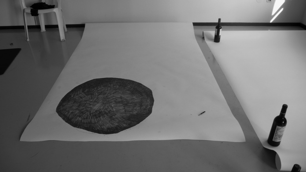 회로가 그려진 종이 세장을 바닥에 펼쳐놓고, 윗장에 동아줄을 그렸다.